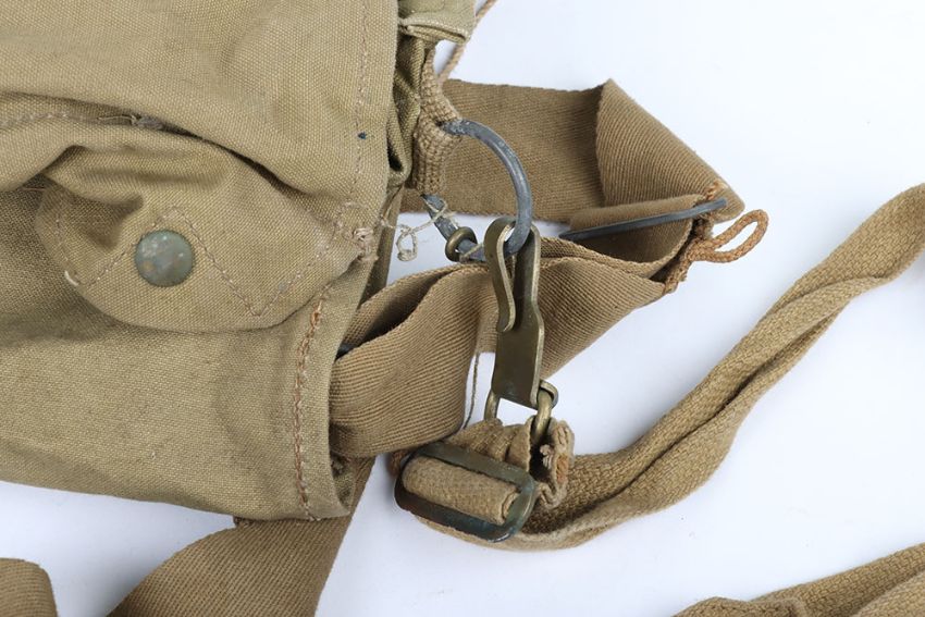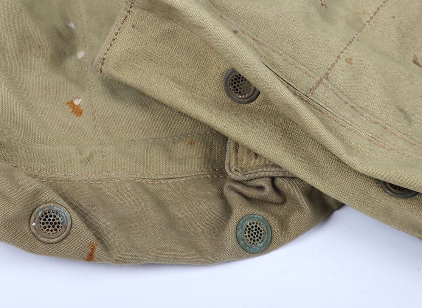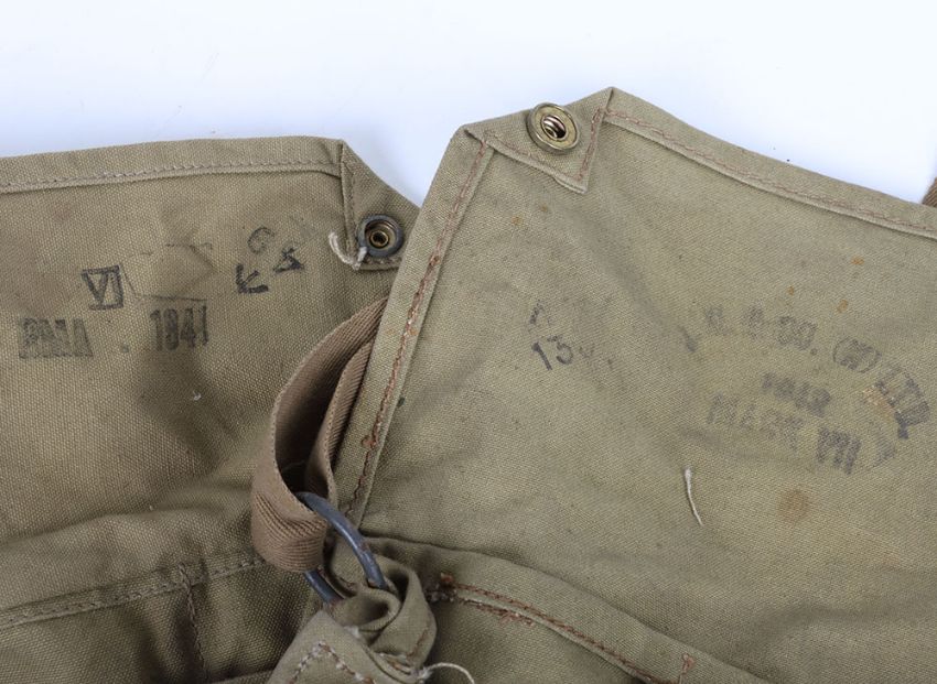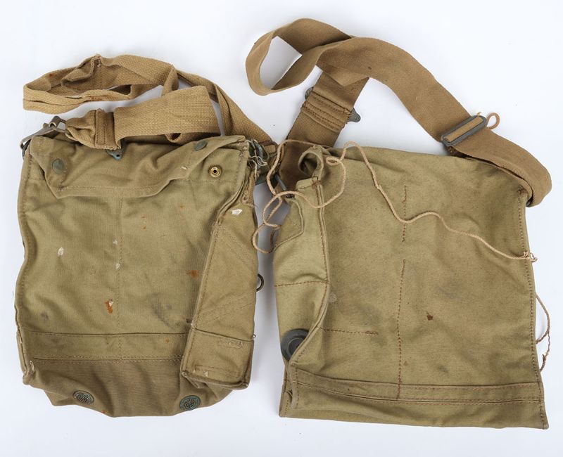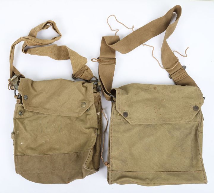 WW2 British Army Gasmask Bags: Two green bags with makers and date stamps inside 1941 and 1942 ,both complete with studs and straps. 2 items