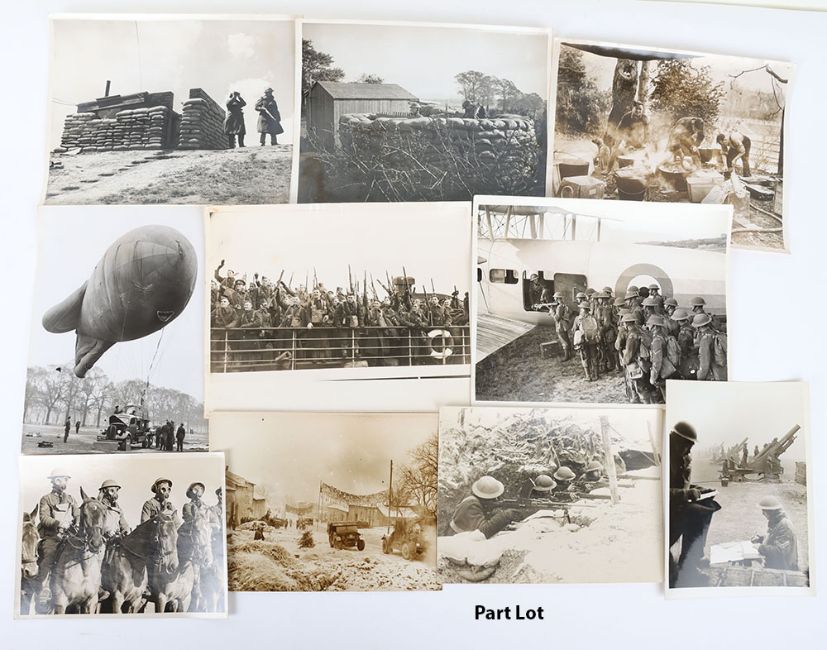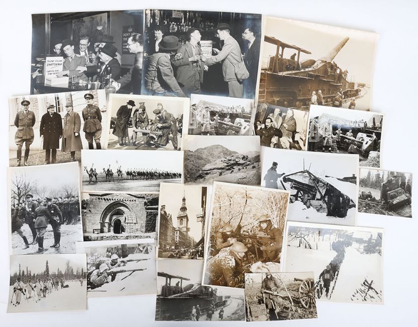 Grouping of WW2 Press Photographs, good selection of black and white press photographs from WW2 with typed descriptions to the reverse. Images include home front and service in France in 1940 etc. Some images of personalities such as Churchill and Chamberlain etc. Various sizes. (31 items)