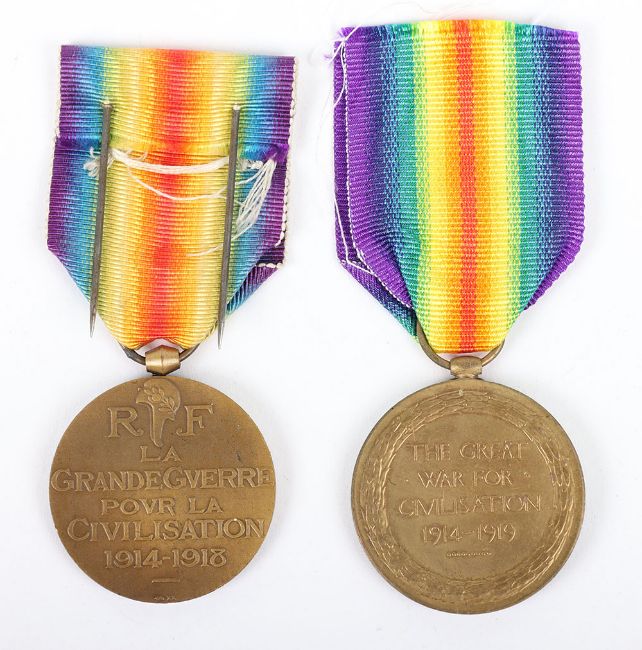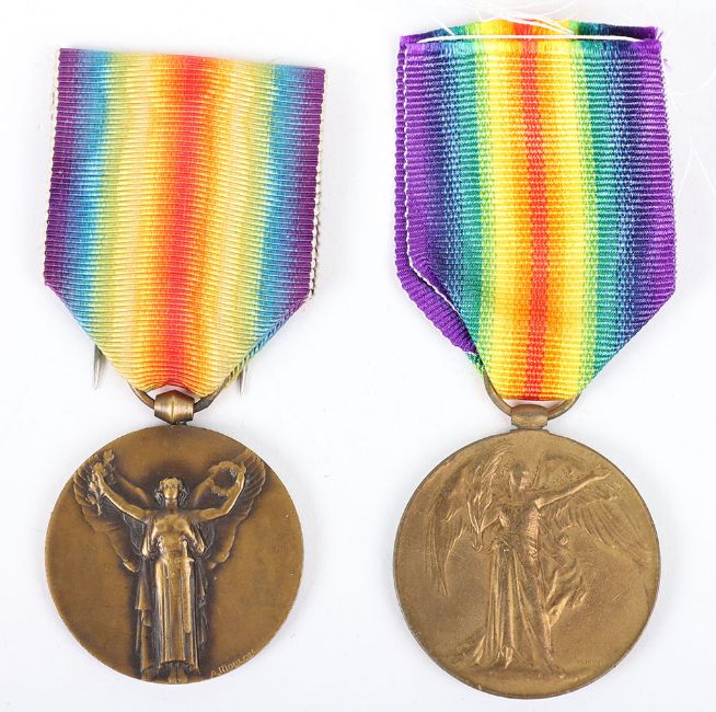 2x Great War Victory medals, Victory medal, “SEP RAM SARAN 57 RFLS F.F.” Victory medal, French issue by Morlon, unnamed as issued on continental style double pin.