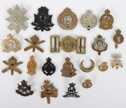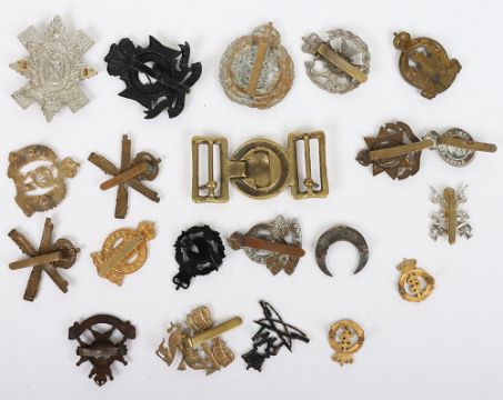 Selection of Military cap badges to include the Black Watch, Machine Gun Corps & 3rd Carabiniers. Al items complete with fittings, lot includes restrikes. (26 items)