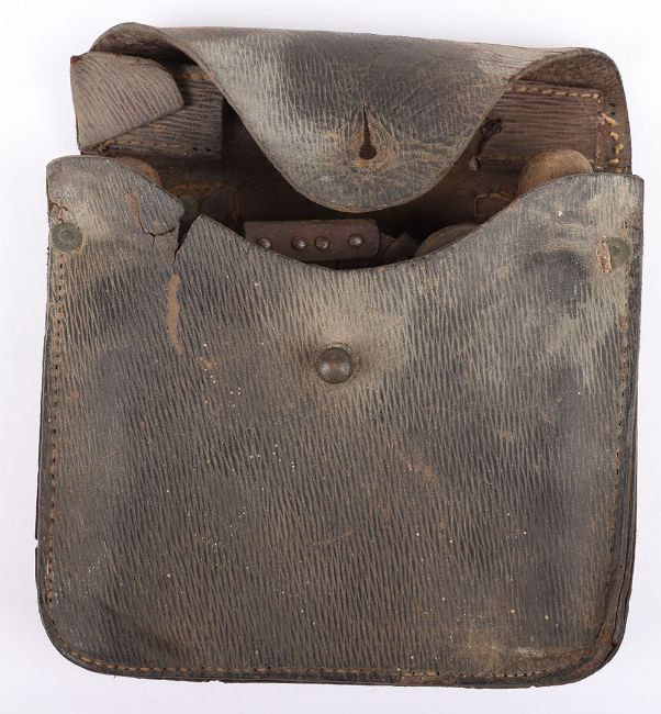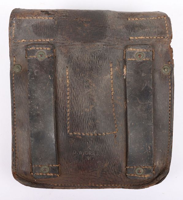 WW1 British Army Engineers Saw: WW1 1917 dated British pioneers folding saw set, leather pouch is stamped 1917 with makers, both handles & tool. Maker marked to saw.