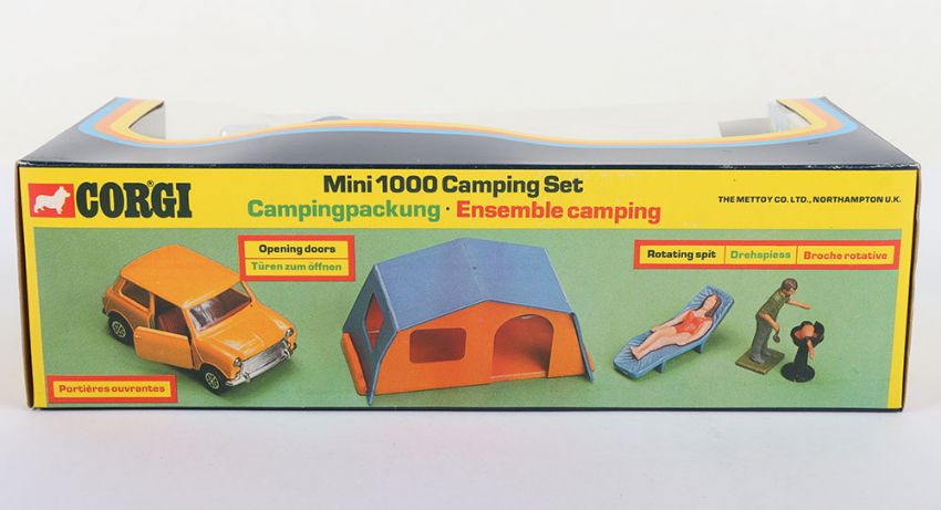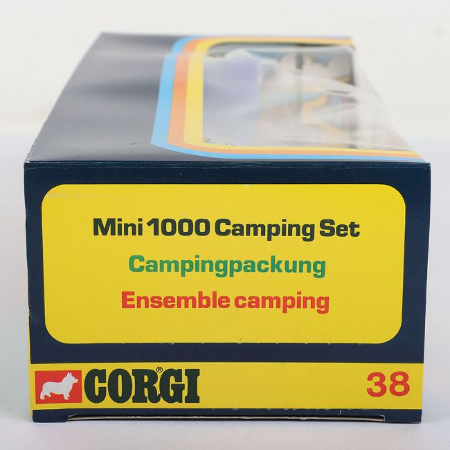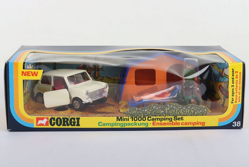 Corgi Gift Set 38 Mini 1000 Camping set, cream Mini 1000, with figures, tent and rotating spit, in mint boxed original condition.