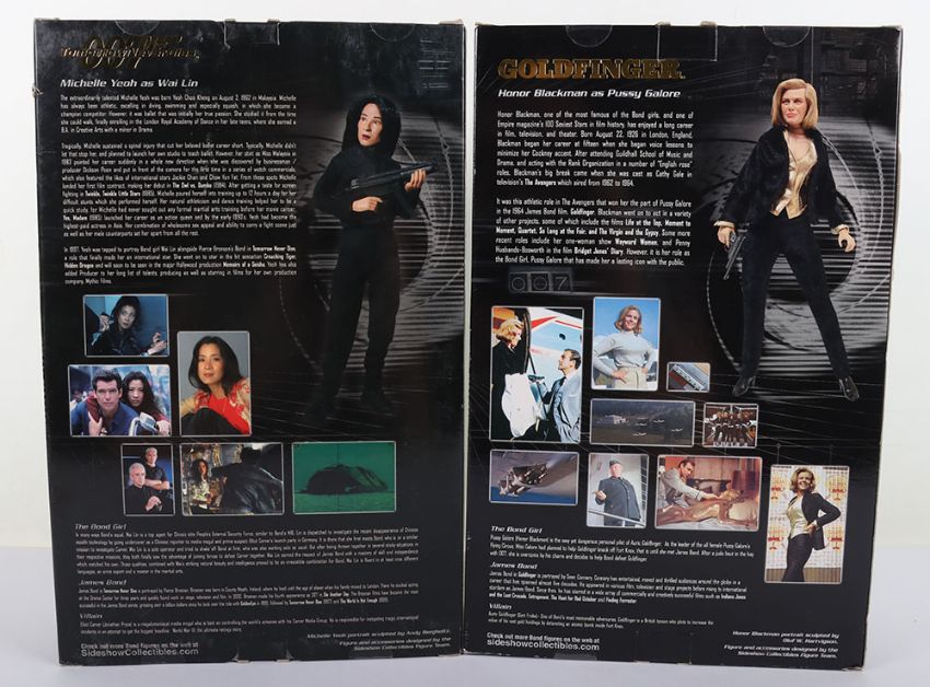 Two James Bond Sideshow Bond Girls 12 inch Action Figures Dolls Boxed. Including Goldfinger Honor Blackman as Pussy Galore opened complete in good condition, Michelle Yeoh as Wai Lin sealed with some minor box wear. (2 items)