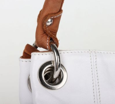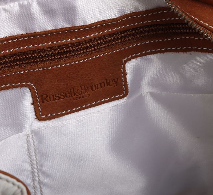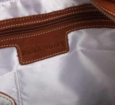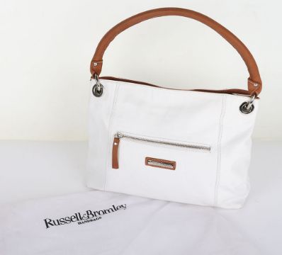 Russell & Bromley White & Tan Handbag Make a statement with this chic Russell & Bromley White & Tan Handbag. The contrasting colours and spacious interior make it the perfect combination of style and functionality. The sturdy handles and high-quality materials ensure durability and long-lasting style.this item is in mint condition. Please refer to images.