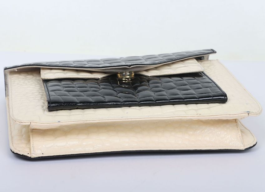 Escada Black & White Clutch with Shoudler Strap This sophisticated Escada Black and White Clutch with Strap Bag is a timeless addition to your accessory collection. Featuring a sleek monochrome design, it can be effortlessly transformed from a chic clutch to a hands-free shoulder bag with its shortening strap. The elegant silhouette and refined color palette make it suitable for both day and evening wear, ensuring you always look polished and stylish. Please refer to images.