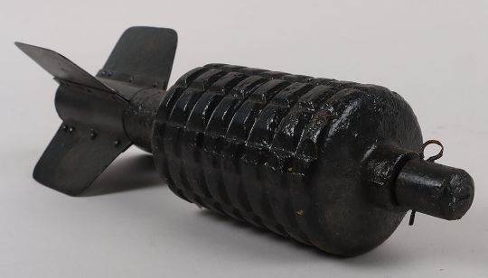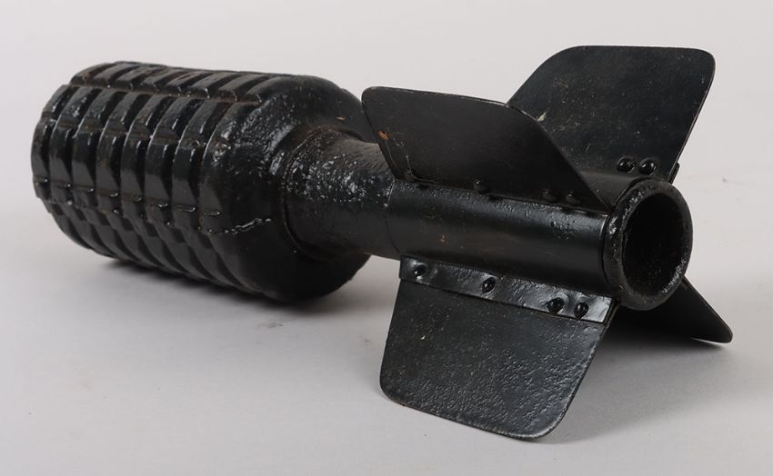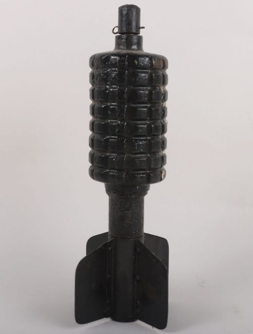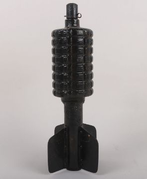 Inert WW1 German Granatenwerfer Spigot Mortar Round. Inert mortar round with fuse top and fins which unscrew from body. THIS LOT CAN NOT BE SENT OUTSIDE OF THE UK