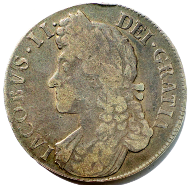 James II (1685-88), Crown, 1688, second bust, QVARTO, (S. 3407), deep battleship grey colour, aVF