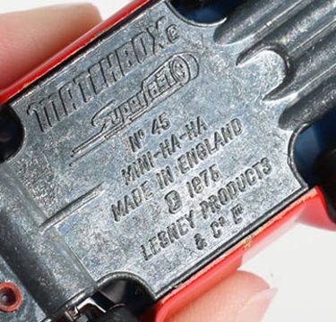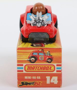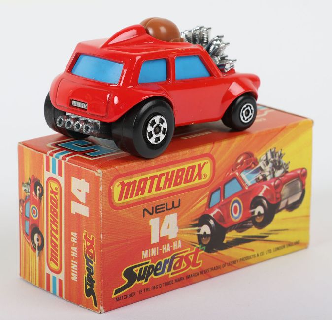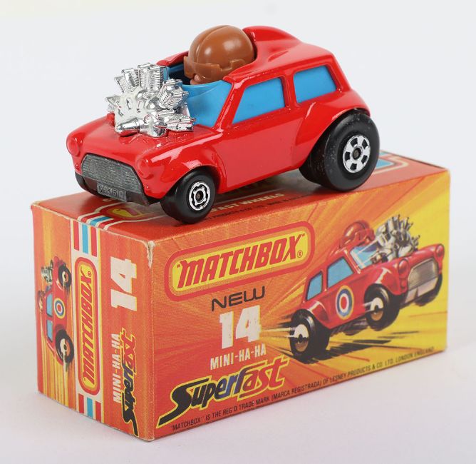 Matchbox Superfast 14b Mini Ha-Ha with RARE pre-production number 45 BASE instead of the number 14 found on all models, the Mini Ha-Ha was going to be allocated the number 45 and then it was changed to 14 when it went into production, model is near mint in a mint J box, an interesting and rare item