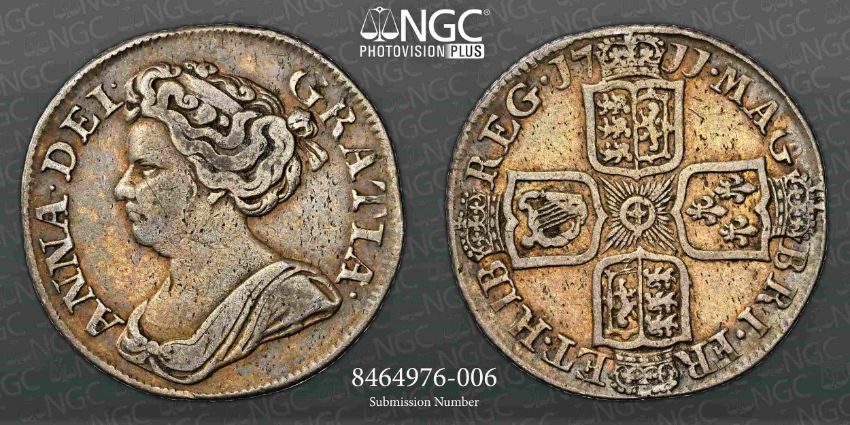 NGC VF25 - Anne (1702-1714), Shilling, 1711, Third bust, rev. crowned shields (S. 3610), Very fine or better, NGC graded VF 25 with this coin being the only one graded in this grade with only seven in a higher grade