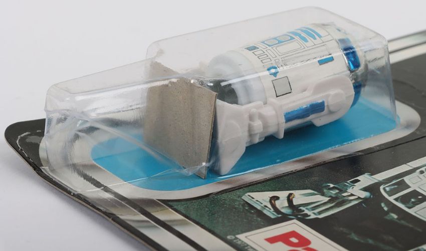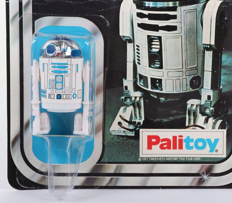 Vintage Star Wars Artoo-Detoo Original R2-D2 Carded Moc Action Figure Palitoy. Factory sealed clear bubble. Minor edge wear and creasing through the middle of the card. 12A backed card. Overall good condition.